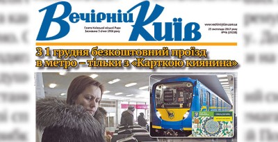 Читайте у свіжому числі «Вечірнього Києва»: з 1 грудня безкоштовний проїзд в метро – тільки з «Карткою киянина»
