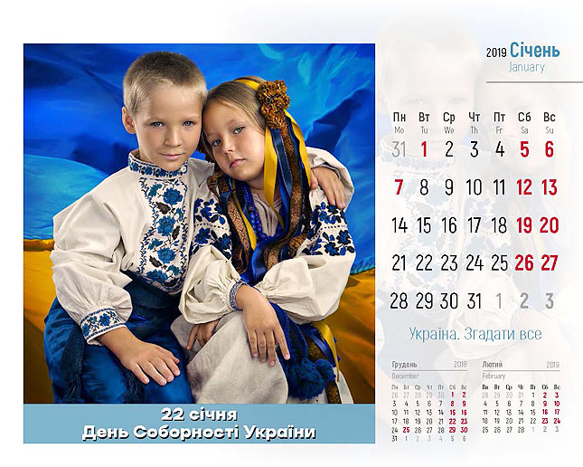 Ексклюзивний настільний календар «Соборна. Вільна. Неподільна» на 2019 рік можна отримати у подарунок 22 січня