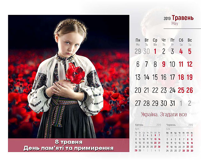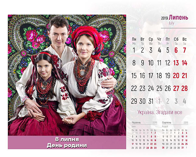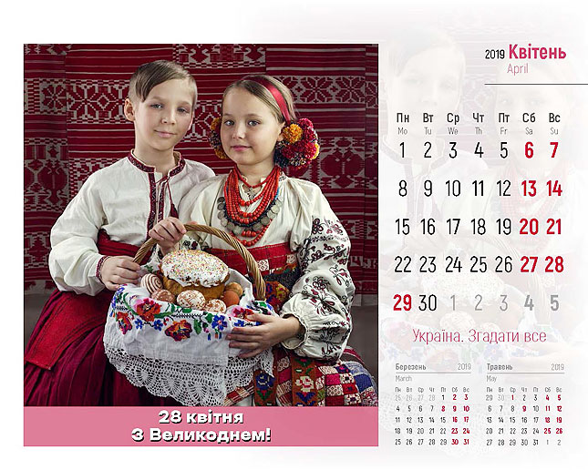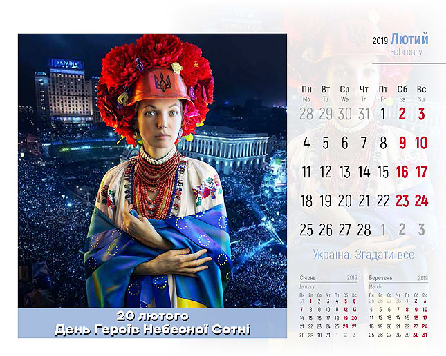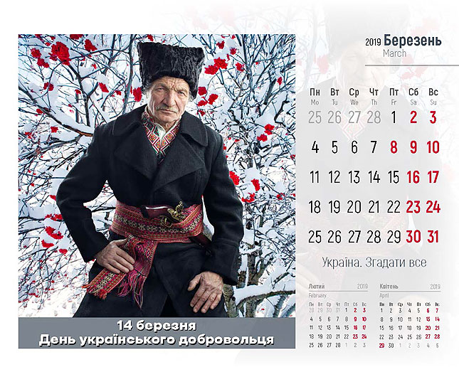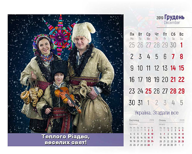‒ Цей проект реалізовано спільно із патріотичним арт-проектом «Україна. Згадати все», які поділилися своєю креативною ідею. Автори цього унікального кольорового календаря – Ігор Князів, креативний директор, та Ганна Бездоганна, стиліст і фотограф проекту, які й надали нам 12 яскравих світлин. Всі, хто завітає до нашого Департаменту у День Соборності України, 22 січня, отримають цей календар у подарунок.