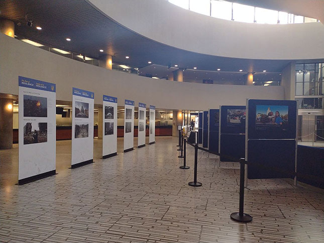 Експозиції наповнювали світлинами виставки «Київ – незламне серце Європи», яку підготував Департамент суспільних комунікацій та фотографіями з інших українських міст. Виставки приурочили до року з початку повномасштабного вторгнення росії в Україну.