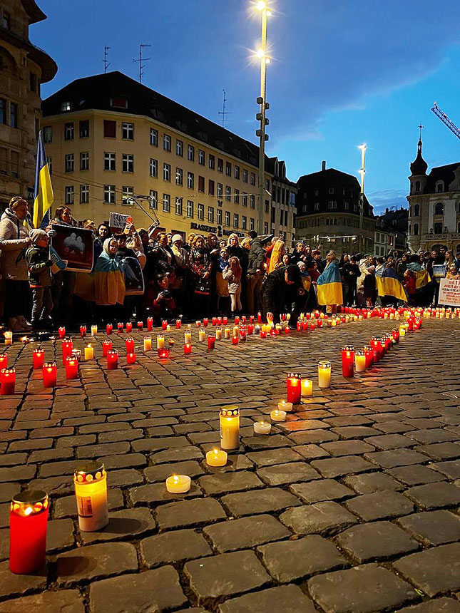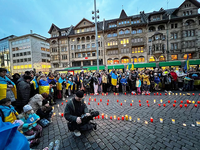 - 24 лютого у Швейцарському Базелі провели акцію на підтримку України, де була представлена фотовиставка. Частина – світлини експозиції «Київ – незламне серце Європи».