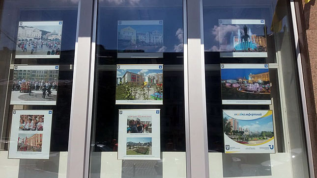 Серія фото розташована у вікнах інформаційного агентства «Укрінформ», на вулиці Богдана Хмельницького 8/16.