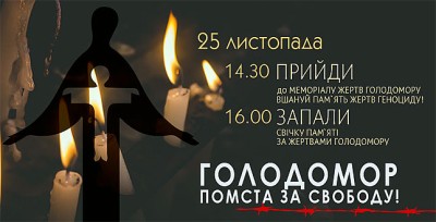 Традиційно відбудеться громадська акція «Засвіти свічку». О 16:00 пам’ять жертв геноциду українського народу вшанують хвилиною мовчання. У цей час кожен охочий може долучитися до вшанування загиблих співвітчизників та встановити свічку на власному підвіконні.