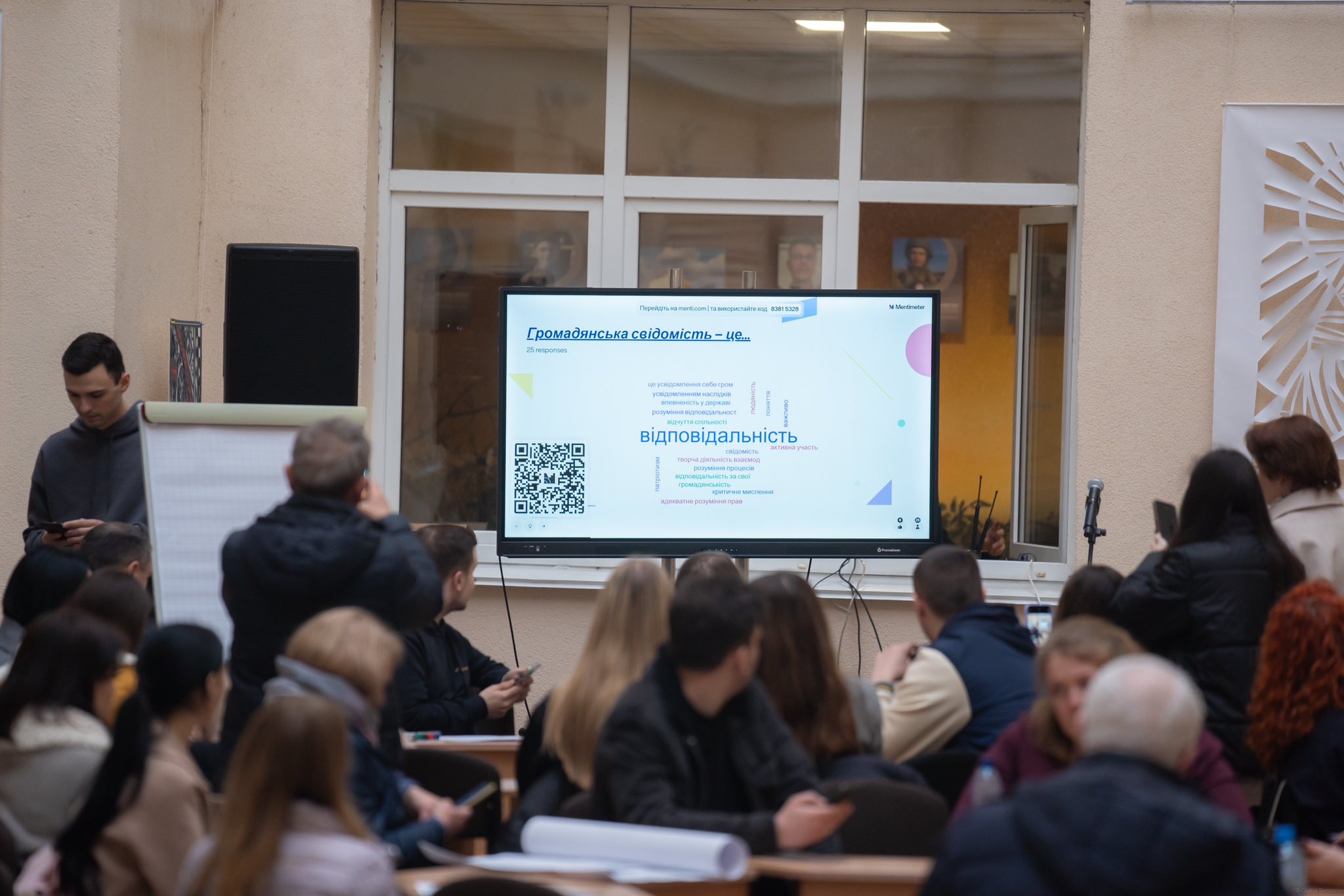 На заході визначали рівень знань в частині громадянської освіти в інтерактивному форматі «Qwez», обговорювали ідеї та бачення змін у фокус-групах та дискутували щодо пошуку інноваційних рішень.