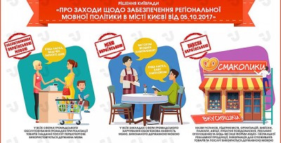 Про це повідомили в управлінні інформаційної політики та комунікацій Департаменту суспільних комунікацій. Розроблена спільно з «Укрінформом» інфографіка – це візуальне тлумачення рішення Київської міської ради від 05.10.2017 № 166/3173 «Про заходи щодо забезпечення регіональної мовної політики» в м. Києві».