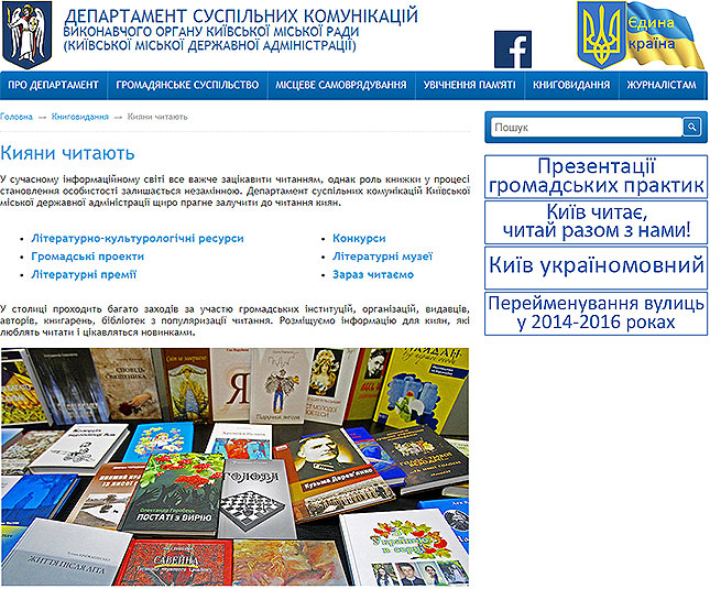 Створено новий підрозділ «КИЯНИ ЧИТАЮТЬ», в якому розміщено корисні сторінки: Літературно-культурологічні ресурси, Громадські проекти, Літературні премії, Конкурси, Літературні музеї, Зараз читаємо.
