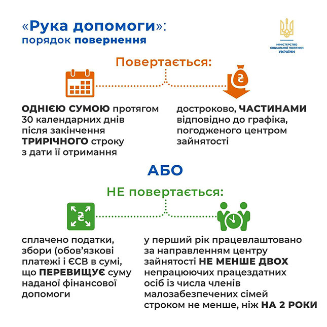 Важливо: сума фінансової допомоги, що повертається, зменшується на суму сплачених податків, зборів і ЄСВ.
