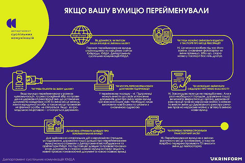 Внести зміни до правовстановлюючих документів можна під час чергового візиту до нотаріусу (наприклад, у разі продажу майна). У разі необхідності довідку про зміну назви вулиці можна отримати у Департаменті містобудування та архітектури КМДА. Детальніше про це – за посиланням: https://goo.gl/UncKx5.